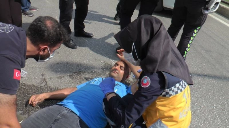 Gaziantep’in Şehitkamil ilçesi Muammer Aksoy Bulvarı üzerinde Emniyet Müdürlüğü önünde Sedat L. idaresindeki motosiklet ile M.K. yönetimindeki bir araç çarpıştı. Kazada motosikletten düşen ve yaralanan sürücü Sedat L. kendisini yere attı. Son dönemlerde kentte artan korona virüs salgını nedeniyle kimsenin yaklaşmadığı yaralının yardımına ise kaza esnasında yoldan geçen bir doktor ile emniyet müdürlüğündeki kazayı gören polisler yetişti.
