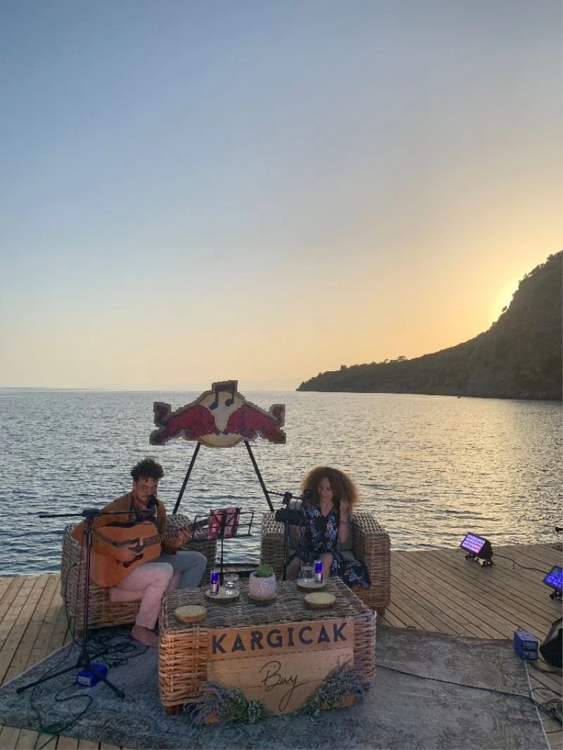 Müzikle insanlar arasındaki mesafeyi kaldırmak için Red Bull’un resmi Instagram hesabı üzerinden benzersiz bir konser deneyimi sunan programda ikili Muğla’nın Kargıcak Koyu’nda muhteşem bir günbatımını arkasına alarak akustik bir performans gerçekleştirdi. Elif Çağlar, şarkıları seslendirdikten sonra "Kargıcak’ta bu eşsiz manzarada sizler için şarkı söylediğim için çok mutluyum. Eminim yerlerinizden bizleri alkışlıyorsunuzdur, ama ben burada kendi kendimizi alkışlayacağım sizler yerine" sözlerini kullandı.