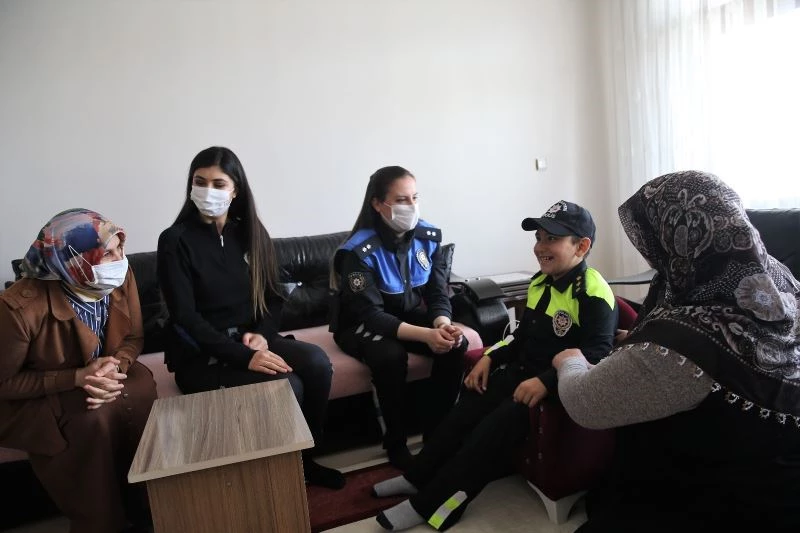 Engelli Ümeyir’in öğretmeninin emniyete başvurduğunu ifade eden Toplum Destekli Polislik Şube Müdürlüğünde Görevli Komiser Nilgün Şimşek, çocuğun polislik mesleği ve polislere duyduğu ilgi karşısında duyarsız kalamadıklarını söyledi. Zaman kaybetmeden Toplum Destekli Polislik Şube Müdürlüğü olarak aileyi ziyaret ettiklerini ifade eden Şimşek, “Çocuğumuz konuşamasa bile, bize sevinç çığlıklarıyla ne kadar çok mutlu olduğunu ifade etti. Değerli öğretmenimize ve ailemize, böylesine bir ortamla bizi buluşturdukları için teşekkür ediyorum. Türk Polis Teşkilatı olarak bize ihtiyaç duyulan her zaman ve her yerde bugün olduğu gibi 176 yıldır vatandaşımızın yanında olduk ve olmaya devam edeceğiz” dedi.