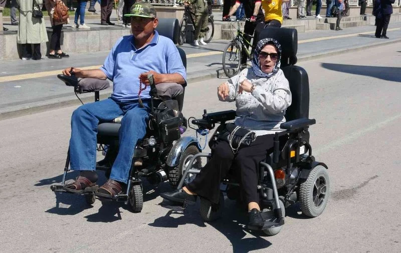 Tokat’ta engelliler günü yürüyüşüne tekerlekli sandalyesi ile katılan bedensel engelli Sabiha Arslan, müzik eşliğinde eğlenceli anlar yaşadı.