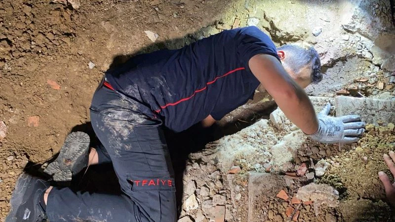 Enkaz altından insan çıkarır gibi kedi kurtarma operasyonu
