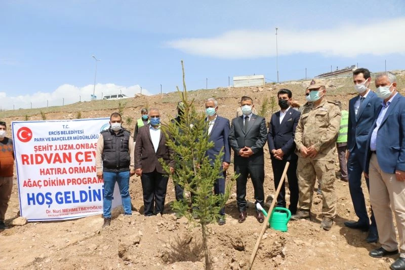 Van’ın Erciş ilçesinde Şehit Jandarma Uzman Onbaşı Rıdvan Çevik Hatıra Ormanına 375 adet fidan dikildi.