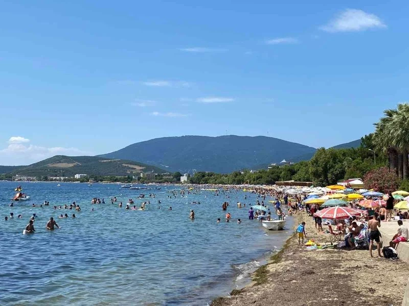 Kurban Bayramı tatilinin 3. gününde Erdek’te halk sıcaklıkların çözümünü plajlarda buldu. 30 dereceyi bulan hava sıcaklıklarından bunalan vatandaşlar denize akın etti. Plajda yer bulabilmeyi başaranlar güneşlenmeyi tercih ederken, serinlemek isteyenler de denize girdi.