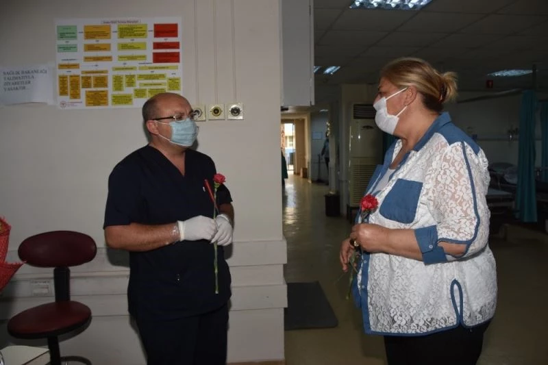 Başkan Erdem, Ceyhan Devlet Hastanesi ve sağlık ocaklarındaki hemşireleri tek tek ziyaret ederek karanfil dağıttı, görevlerinde kolaylıklar diledi.