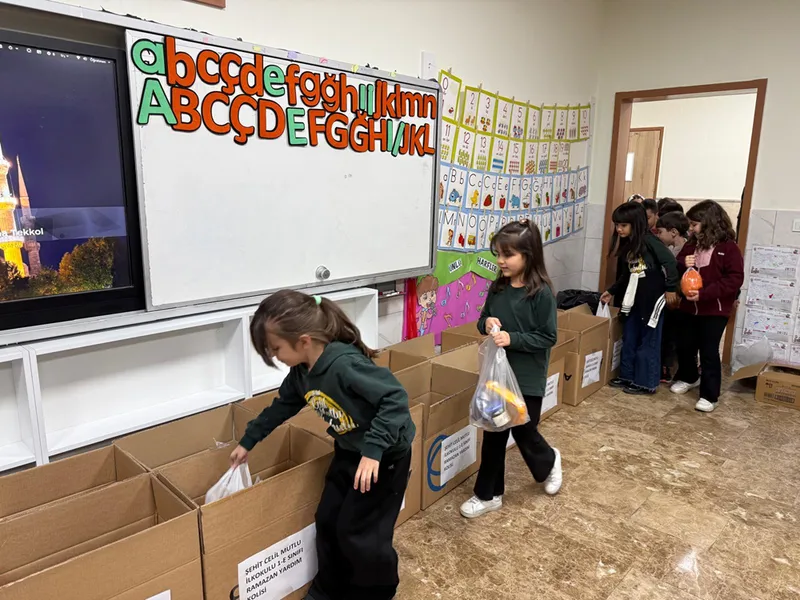 Şehit Celil Mutlu İlkokulu'nun 1. sınıf öğrencileri, "Ramazan Paylaşmaktır" projesi kapsamında harçlıklarını biriktirdi.