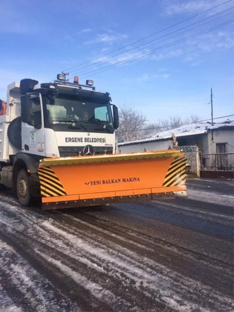 Meteorolojik uyarıları dikkate alarak tüm hazırlıklarını yapan ve hem personeli hem araç gereçleri hem de makine parkuru ile kar yağışı öncesinde teyakkuza geçen Ergene Belediyesi şehir merkezinin yanı sıra köyden mahalleye dönüştürülen kırsal mahallelerde de kar yağışının keyif olmaktan çıkıp çileye dönmesini önledi.