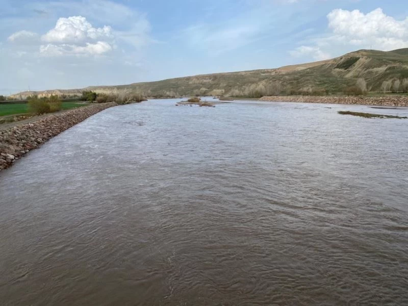 Erzurum’da karların erimeye başlamasıyla birlikte su seviyesi yükselen Aras Nehri taştı, bazı araziler su altında kaldı.