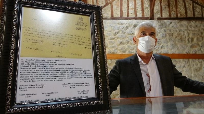Kemal Selekoğlu, "24 Nisan bizim açımızdan Ermenilerin Türklere yaptıkları katliamın günü aslında. Onlar tam tersini her 24 Nisan’da söylese de Türk halkına, Müslümanlara yapmadıkları kalmamış bunları dedemden kalan belgeler ile görüyoruz. Büyük babam Sehlikzade Hasan Efendi’den kalan ve resmi kurumlarda da kayıtlı olan belgeler her şeyi anlatıyor. Hasan Efendi Adana girişinde buradaki mücadeleyi açıklıyor. Mektupta ’Müslümanlar için hazırlanmış katliamın uygulanmaya başladığı ve Allah’a sığınarak göç etmek için yola çıkanların acı ifadelerinden anlaşıldığından bir an önce tedbir alınması talebi ve kadın ve gençlere namus ve boğazlarının kesildiğini’ aktarıyor. Bu zor şartlarda yola çıktık ve ilçe ilçe köy köy dolarak vatandaşı direnişe çağırdıklarını anlatıyor. Kuvayi Millîye burada başlamış. Burası Kozan’a bağlı Çukurköprü’den Bucak istikametine gelirken herkesin gezip görebileceği bir merkez. Herkes gelip görsün. 100 yıl önce yaşananları unutmayalım. Şu anda bu mücadele yeniden yaşanıyor ve yıllarının resimleri var. Bizim tek beklentimiz vatandaşlarımız bu belgeleri bu tarihi görsün ve şu an Libya’da, Suriye’de, Doğu Akdeniz’de verilen mücadeleyi doğru anlayalım ve geleceğimize ışık olsun” dedi.