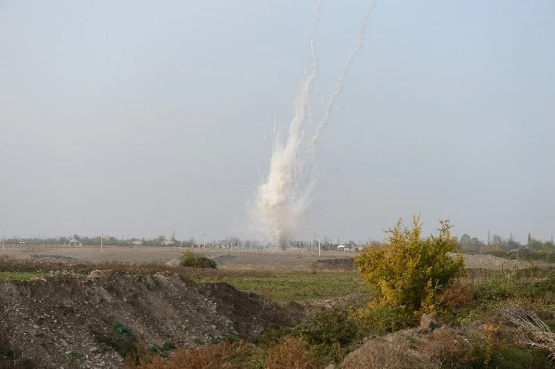 Ermenistan’ın Terter’e attığı yasaklı fosforlu top mermisi imha edildi