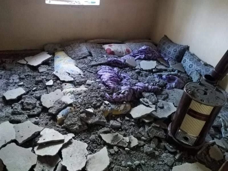 Siirt’tin Eruh ilçesinde gece yarısı bir evin tavanındaki betonlar düştü, anne ve iki çocuğu yara almadan kurtuldu.