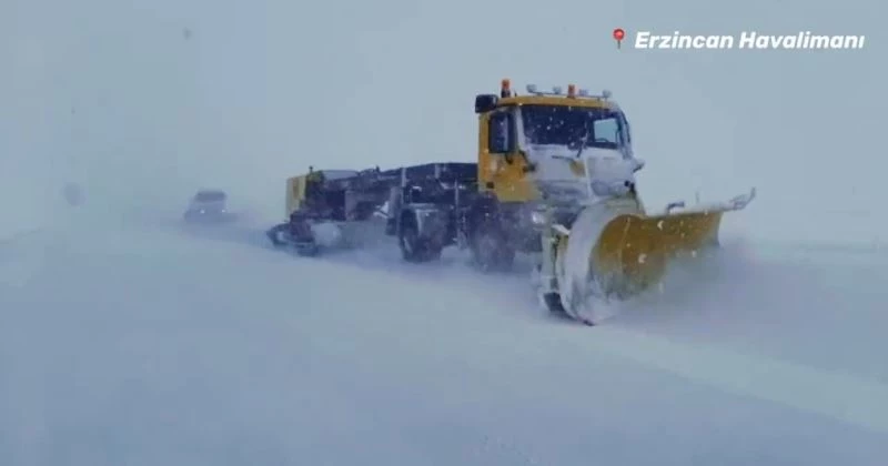 Erzincan Yıldırım Akbulut Havalimanı’nda karla mücadele