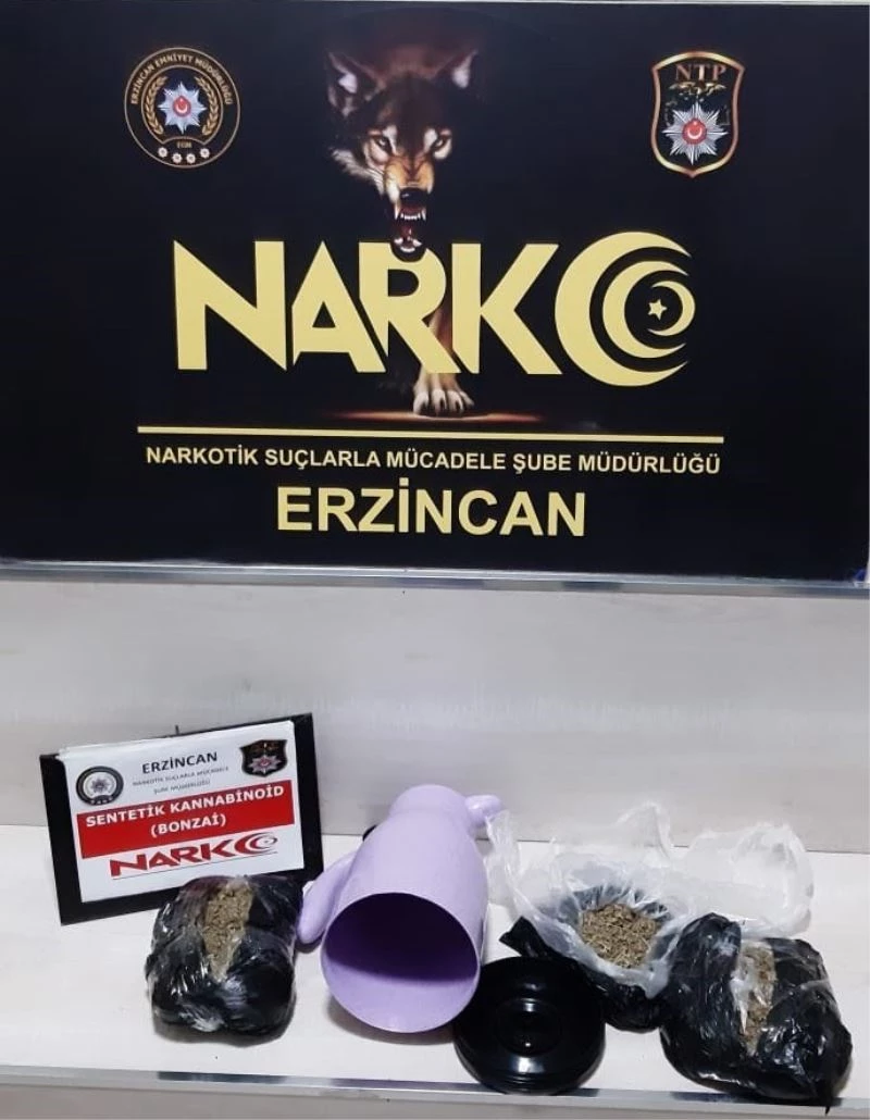 Erzincan İl Emniyet Müdürlüğü, Narkotik Suçlarla Mücadele Şube Müdürlüğü ekiplerince, Erzincan- Sivas kara yolu üzerinde yapılan yol uygulamasında durdurulan şehirlerarası yolcu otobüsünde yapılan kontrolde otobüsün raf kısmında 2 yolcuya ait çanta içerisinde 466,62 gram sentetik bonzai uyuşturucu madde ele geçirildi.