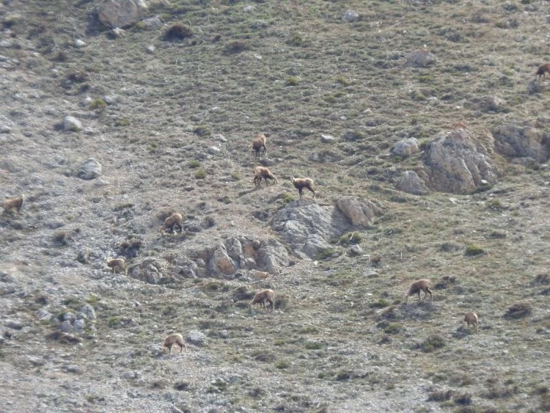 Erzincan’da 3 bin 300 rakımlı Munzur Dağı’nda, şamua cinsi olarak bilinen çengel boynuzlu dağ keçileri, sürü halinde görüntülendi.