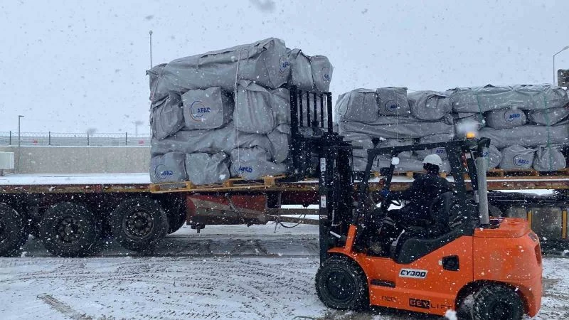 Yüklenen yardım malzemeleri kısa sürede depremden etkilenen illere ulaştırılacak.