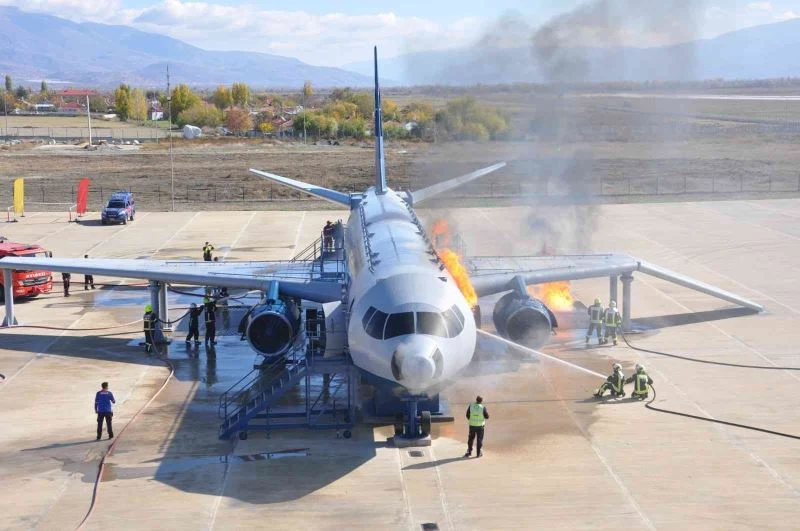 Erzincan’daki havalimanında uçak kazası tatbikatı gerçekleştirildi