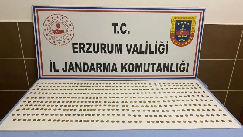 Erzurum’da yol uygulama noktasında bir araçta jandarma ekipleri tarafından yapılan aramada 439 adet sikke ele geçirildi.