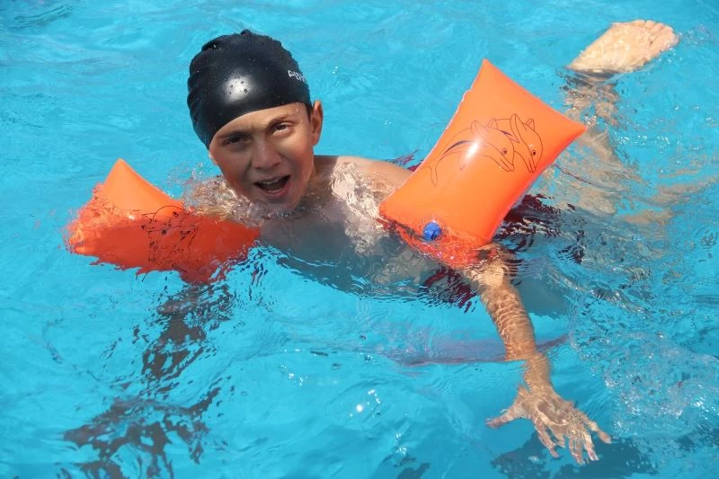 Erzurumlu çocuklar yüzmeyi açık hava yüzme havuzlarında öğreniyor