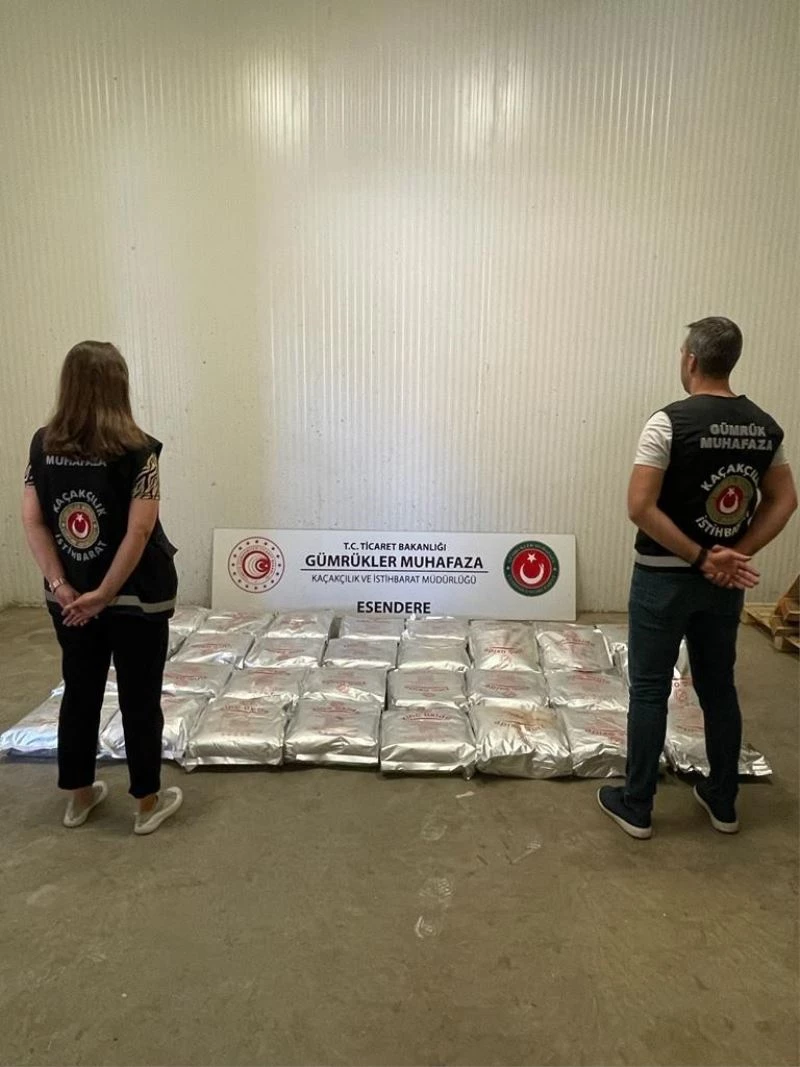 Gümrükler Muhafaza Genel Müdürlüğü tarafından yurt genelinde gümrük kapılarından Türkiye’ye giriş ve çıkış yapan araçlar risk faktörleri gözetilerek sürekli olarak analiz ediliyor. Sistemlere şüpheli olarak işlenen şahıslardan birinin ülkeye getireceği araca ilişkin alınan uyarı Esendere Gümrük Muhafaza Kaçakçılık ve İstihbarat Müdürlüğüne iletildi. Esendere gümrük sahasına giriş yapan bir tır, Gümrük Muhafaza ekiplerince takip edilerek x-ray taramasına yönlendirildi. Yapılan taramada tespit edilen yoğunluk üzerine narkotik dedektör köpeği ile arama yapıldı. Narkotik dedektör köpeğin de yüke tepki vermesi üzerine araç boşaltıldı ve yapılan detaylı aramada paketlerden bazılarının farklı ağırlıkta ve işaretli olduğu görüldü. Alınan numunelerin uyuşturucu ve kimyasal madde tespit cihazıyla yapılan ön analizinde maddenin eroin olduğu anlaşıldı. Yasal yükün içerisine gizlenmiş vaziyette toplam 512 kilogram eroin ele geçirildi. Konuyla ilgili olarak üç farklı ilde yürütülen operasyonlarda olayla bağlantılı şüpheliler gözaltına alındı.