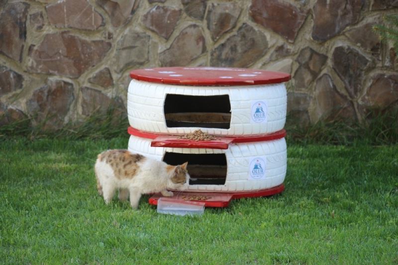 Eski lastikleri kesip boyayıp üzerini kapatarak sokak hayvanlarına hem yuva hem de mama kabı yatılar. Boyadıkları lastiklerin ortalarına koydukları plastik leğenlere sokak köpekleri için yemek koyacaklar yapılan lastik mama kaplarını ilçenin muhtelif yerlerine koyacaklar. Konulacak kaplara isteyen vatandaşlarda tarafından mama desteğinde bulunabilecekler.