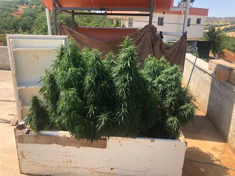 Kahramanmaraş’ta bir evin damındaki eski buzdolabına ekilmiş 10 kök kenevir bitkisi ele geçirildi.