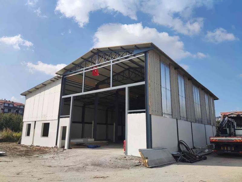 Beton zemini yapılan ve çelik aksamınım kurulumuyla hemen hemen tamamlanan binanın çatısı ve yan duvarlarının kaplaması da yine Gölcük Belediyesi ekipleri tarafından yapıldı. Eski mezbaha binasının çelik konstrüksiyon malzemelerinin kullanılarak yapımının tamamlandığı yeni imalat bakım ve onarım binası ile 2 milyon 500 bin TL’lik tasarruf sağlandı.