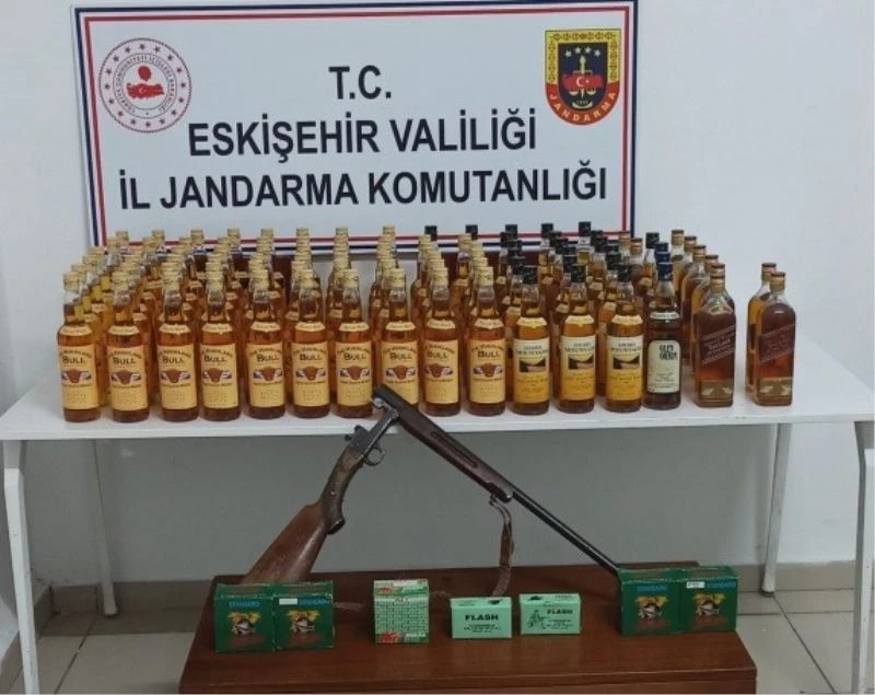 Eskişehir’de bir şahsın bandrolsüz ve hologramsız alkollü içki sattığı bilgisini alan ekipler, adreste yaptıkları armalarda, 92 şişe bandrolsüz içki, 1 adet tek kırma ruhsatsız tüfek ve 141 adet dolu av tüfeği mermisi ele geçirdi.