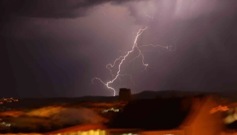 Kent genelinde akşam saatlerinden itibaren sağanak yağış etkili oldu. Kısa süren sağanak yağışın ardından ardı ardına çakan şimşekler adeta görsel şölen oluşturdu. Gece karanlığını aydınlatan şimşekler, kartpostallık görüntüler oluşturdu.