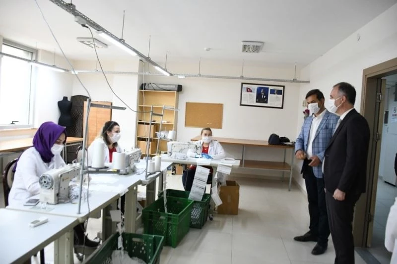 İNESMEK maske atölyelerinde yapılan buluşmada, maske üretimi de gezilerek incelendi. Burada bir açıklama yapan Belediye Başkanı Alper Taban, “Elektrikçiler Oda Başkanımızla birlikte Beşinci Mevsim binamızda maske üretim sınıflarımızda usta öğreticilerimiz ve İNESMEK yetkililerimizle bir aradayız. Maske üretimini tekrar bir yerinde gözlemleyelim istedik. Arkadaşlarımız başından beri burada üretmeye devam ediyorlar. Ben her birine teşekkür ediyorum. İşitme engelliler için özel maskeler ürettik, çocuklarımız için özel maskeler tasarladık. Yetişkinler için de normal maskelerimiz var. Bunları da olabildiğince kamu alanlarına, hastanelerimize, toplu kullanım alanlarına ulaştırıyoruz” dedi.
