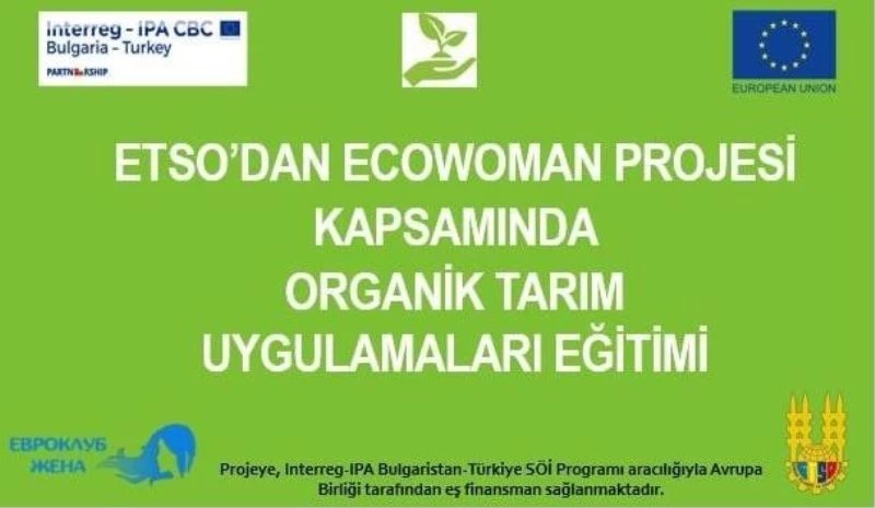 Edirne Ticaret ve Sanayi Odası’nın yürüttüğü ECOWOMAN projesi kapsamında “Tarım Ürünlerinin Ve Gıdaların Ekolojik Ve Biyolojik Üretiminin Organizasyonu Ve Uygulanması” başlıklı bir eğitim düzenlenecektir. Proje (Proje No: CB 005.2.12.079, Sözleşme No: ??-02-29-174 / 23.07.2019) Interreg-IPA Sınır Ötesi İşbirliği Programı Bulgaristan - Türkiye 2014-2020 tarafından finanse edilmektedir.