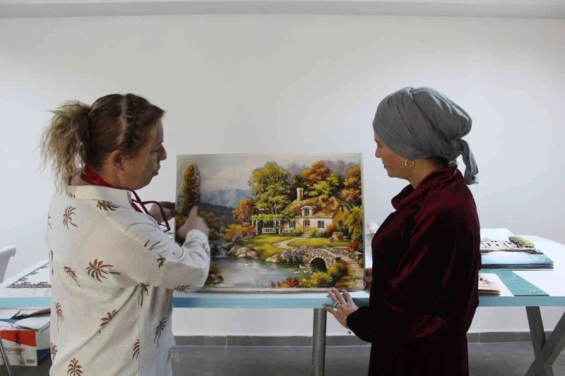Ev hanımları el sanatları kursunda hayallerini işliyor