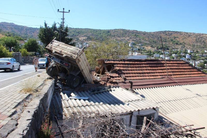 Muğla’nın Bodrum ilçesinden bir evin çatısından içeriye kamyonet girdi, 2 kişi yaralandı. Evinde torunuyla birlikte salça yapan yaşlı teyze ise evin içerisinde kamyonet görünce şoka girdi.