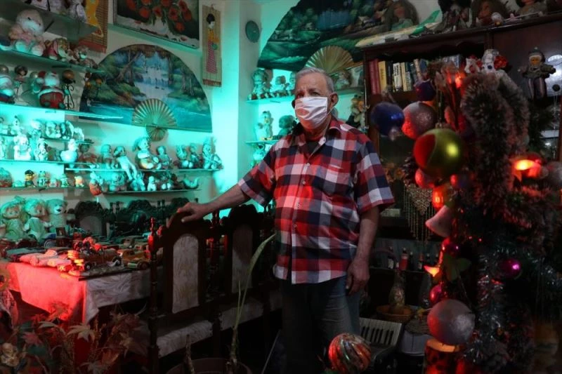 HATAY (AA) - BURAK MILLI - Hatay'in Iskenderun ilçesinde 82 yasindaki Erdem Erozan, yeni tip koronavirüs (Kovid-19) tedbirleri kapsaminda sokaga çikmalari kisitlanan 65 yas ve üstü vatandaslara yapilan "evde kal" çagrisina, yaklasik 58 yildir hobi amaçli biriktirdigi oyuncak ve süs esyalari arasinda uyuyor.