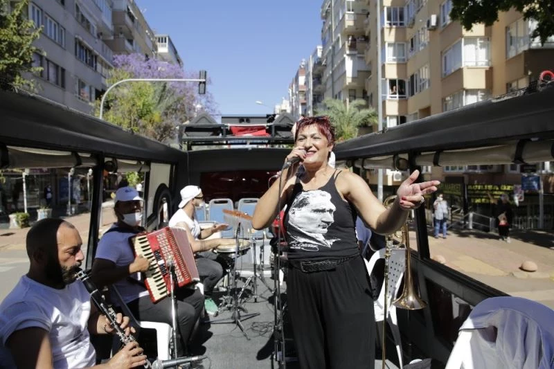 Antalya Büyükşehir Belediye Başkanı Muhittin Böcek’in talimatıyla Kültür ve Sosyal İşler Dairesi Başkanlığı tarafından bayram boyunca mobil konserler düzenlendi. Mobil kamyon ve otobüslerle şehrin her köşesini gezen Antalya Büyükşehir Belediye Bando ve Orkestrası, Emre Dayıoğlu ve Orkestrası ile Antalya’nın Yerel Sanatçılarından oluşan ekipler çaldıkları şarkılarla vatandaşlara keyifli anlar yaşattı. Evlerinin balkonlarından coşkuya ortak olan Antalyalılar şarkılara alkışlarıyla eşlik etti.