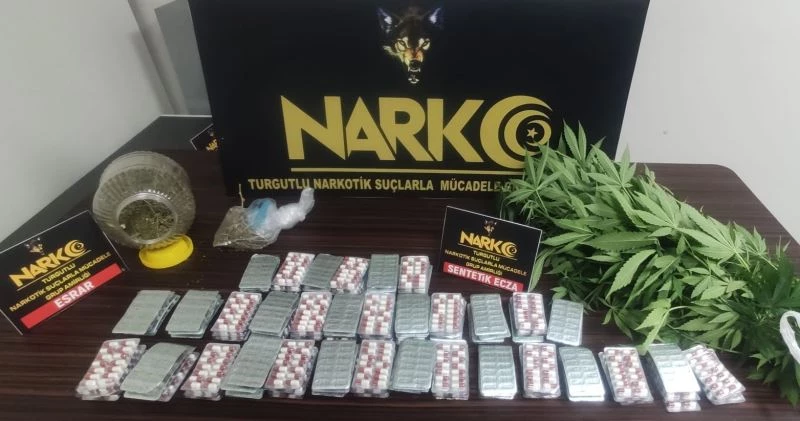 Turgutlu Narkotik Suçlarla Mücadele Grup Amirliği görevlilerince uyuşturucu veya uyarıcı madde ticareti yapan, nakleden ve kullanan şahıslara yönelik yapılan çalışmalarda; uyuşturucu ticareti yaptığı yönünde bilgiler alınan Y.K.’nın evinde yapılan aramada; 1777 adet 300 mg sentetik ecza hapı, toplamda 3 parça halinde 400 gram esrar maddesi ve 8 kök kenevir bitkisi ele geçirildi. Gözaltına alınan şüpheli şahıs uyuşturucu madde ticaretinden bugün adli mercilere sevk edilecek.