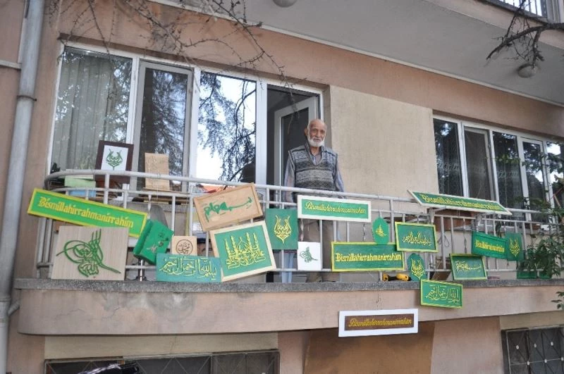 Afyonkarahisar’da yaşayan 81 yaşındaki emekli öğretmen evini atölyeye çevirerek kıl testereyle ahşaptan yaptığı eserleri balkonunda sergilemeye başladı.
