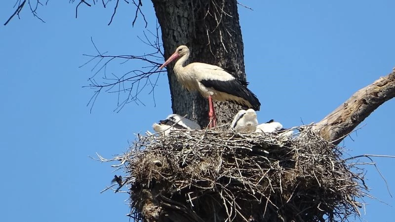 Kalaycı Mahallesi’nde oturan Tevfik Yüksel, evinin bahçesinde bulunan ağaçlarda bulunan 27 yuvada 55 leylek yaşıyor. Evinin hemen bitişiğinde bulunan ağaçlara yerleşen leyleklere gözü gibi bakan Yüksel, “Hemen hemen 10 yıldır buradalar. Onlara alıştık, bizim bir parçamız gibiler. Elimizden geldiği kadar biz bunları koruyoruz. Çevrede avcılar silah atınca onları ikaz ediyoruz. Bu hayvanlar bizim yanımızda dolaşıyor. Evde bizim hayvanlarımız gibi oldu. 15 Ağustos’a kadar burada hep beraberiz. Aile gibi bir ortamımız var. Bunlar korunması gereken hayvanlar. Bu aralar yuvalardan yavru atıyorlar. Bakamadıkları 4 yavrunun 1 tanesini atıyorlar, üçer tane yavru bırakıyorlar. Bu hafta devamlı yavru attılar. Aşağı attıkları yavruları başka hayvanlar yemesinler diye toplayıp gömüyoruz. 27 yuva var, 1 yuvada tek, öbürlerinde çift leylek var. Göç başlayınca buradan 70-75 yavruyla gidecekler. Eylülün ilk haftası gökyüzüne çıktıklarında göç haftası başlıyor" dedi.