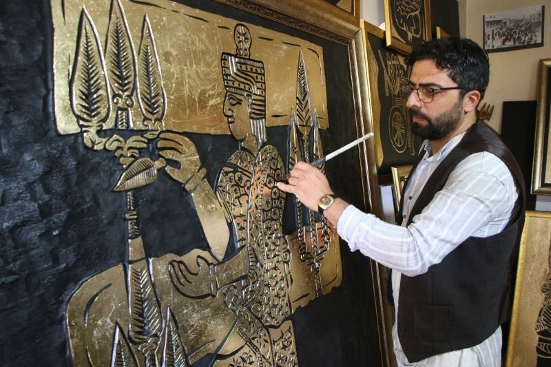 15 yıldır görsel sanatlarla uğraştığını belirten Fatih Bakır, “Son zamanda artık ihtiyaca göre şekil alıyorum. Yaptığımız ş şuan ahşap oyma ve altın varak sanatını buluşturarak, objeleri göstermek istiyoruz. Elimizden geldiğince yapamaya çalışıyoruz. Yapım süresi objeye göre değişiyor. 3 saat süren ve 3 ay süren görsellerde oluyor. Üzerindeki ayrıntı ve motife göre şekil alıyor. Urartuları işledik. Var olan motifleri biraz daha belirginleştirerek, boyunlarını ölçeklendirerek oyduk. Kemer motiflerindeki görselleri bile büyütüp ahşaba işledik ve gideceği mekanda sergilenecek. Ayos diye Afrika ağacı ile yapılıyor. Ama şuada MDF oyuyoruz. Gürgen, meşe, ıhlamur ağaçlarını oyuyoruz. Ama istediğimiz ölçüde olmadığı için bu aralar MDF oyuyoruz. Onu kimyasallarla kitleyip, uzun senelere mukavemetini artırarak çalışmaya devam ediyoruz. Şuan Katar ile çalışıyorum. Almanya, Rusya ve Azerbaycan’a oylamalar gönderiyoruz. Bence sanat kopya çekmektir. Baktığımız herhangi bir şeyi belli bir çerçeveden geçirip yüzeye aktarıyoruz. Ahşabın çok farklı bir dokusu var. Aslında ahşap ile insan arasında herhangi bir kimyasal sokmamak lazım. Ahşabı hissetmek ayrı bir şey. Ahşap ile insan arasında çok güzel bir ilişki olduğuna inanıyorum. Severek yapmaya çalışıyorum” dedi.
