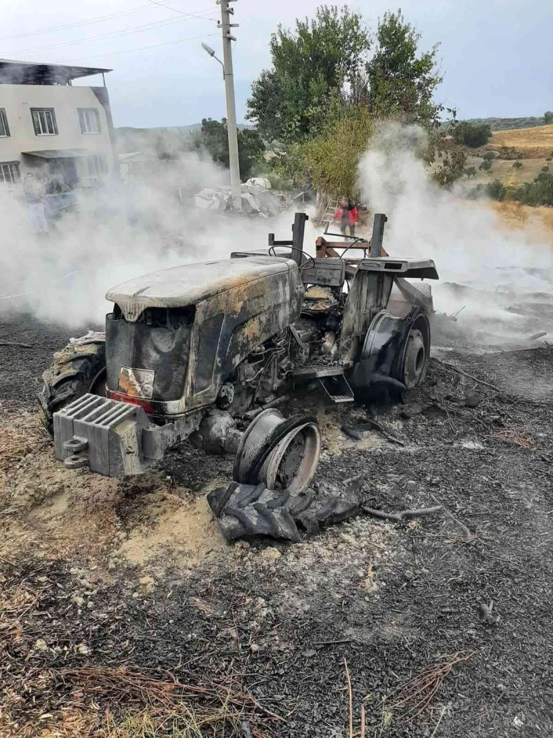 İtfaiye ekiplerinin çalışmasıyla söndürülen yangında traktör kullanılmaz hale geldi. Jandarma olayla ilgili soruşturma başlattı.