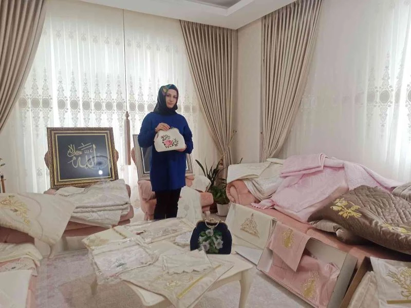 Geçmişten bugüne gelen el sanatlarını tamamen el işçiliği ile sürdürdüğünü belirten Düşünceli, “El emeği göz nuru ürünleri tamamen el işçiliği ile yaparak aile ekonomisine katkı sağlıyorum. Daha önceleri evimde bu işleri yapıyordum fakat siparişler artınca ve çevreden de talepler olunca kendi işimi kurmak istedim. Daha sonra mikro krediye başvurdum ve oradan aldığım bin TL destekle malzeme alarak evimin salonunu tamamen yaptığım ürünlere ayırdım. Burada sim sırma, Antep işi, tel kırma, file ve ofis panoları yaparak özel müşterilerime, sosyal çevreme ve sosyal medya hesaplarım üzerinden beğenilerine sunarak gelinlerimizin çeyizlerini süslüyoruz. Tamamen el işçiliği bana ait. Ben işimi kurarak, kendi ayaklarım üzerinde durmayı başardım ve 10 yıldır bu işi yapıyorum. Adım atamayan birçok kadın arkadaşlara da bu konuda örnek olmak istiyorum” dedi.