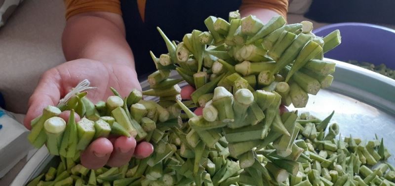 Çorum’un Osmancık ilçesinde bamya hasadıyla birlikte evlerde kış hazırlığı başladı.