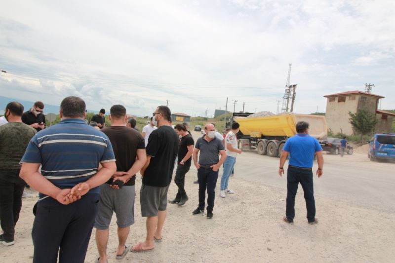Kocaeli’nin Körfez ilçesi Kışladüzü Mahallesi’nde yaşayan vatandaşlar, evlerine 500 metre uzaklıkta bulunan taş ocağındaki patlamalar ve oluşan tozun kendilerine zarar verdiğini iddia ederek, hafriyat kamyonlarının geçiş yaptığı yolu kapattı.