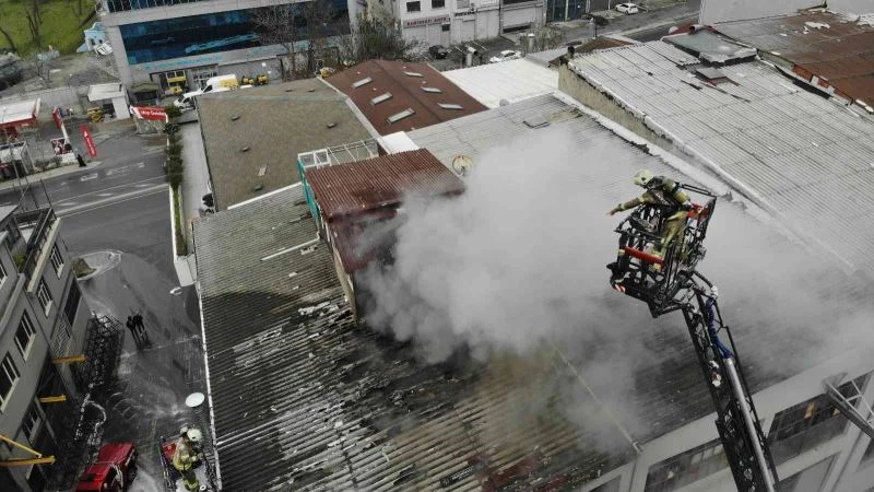 Eyüpsultan’da mobilya imalatı yapan bir iş yerinin çatısında çıkan yangın itfaiye ekipleri tarafından söndürüldü. Dumanların yükseldiği iş yeri, dron ile havadan görüntülendi.