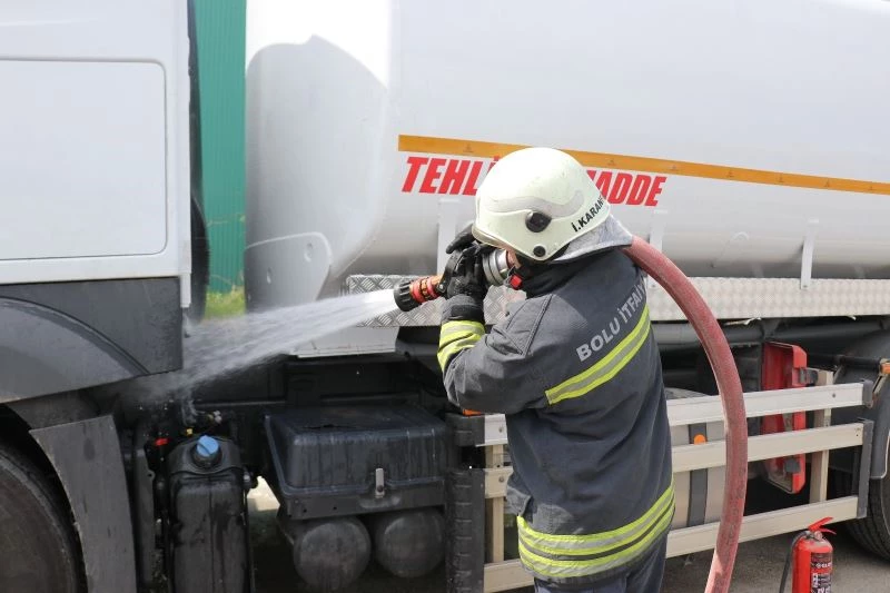 Bolu’da, seyir halindeki mazot yüklü tankerin çekici kısmında çıkan yangın itfaiye ekipleri tarafından büyümeden söndürüldü.
