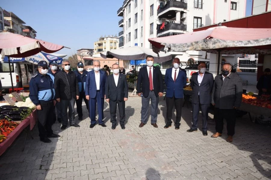 Belediye Başkan yardımcısı Mehmet Hulusi Akkuş, Belediye Meclis üyeleri Erhan Bakar , Feramuz Akbıyık, Belediye Zabıta Müdürü İbrahim Boran, Mahalle Muhtarı Mustafa Çelik, Pazarcılar Dernek Başkanı İsmail Görgülü semt pazarı esnaflarını gezerek hayırlı olsun dileklerini bildirdiler.