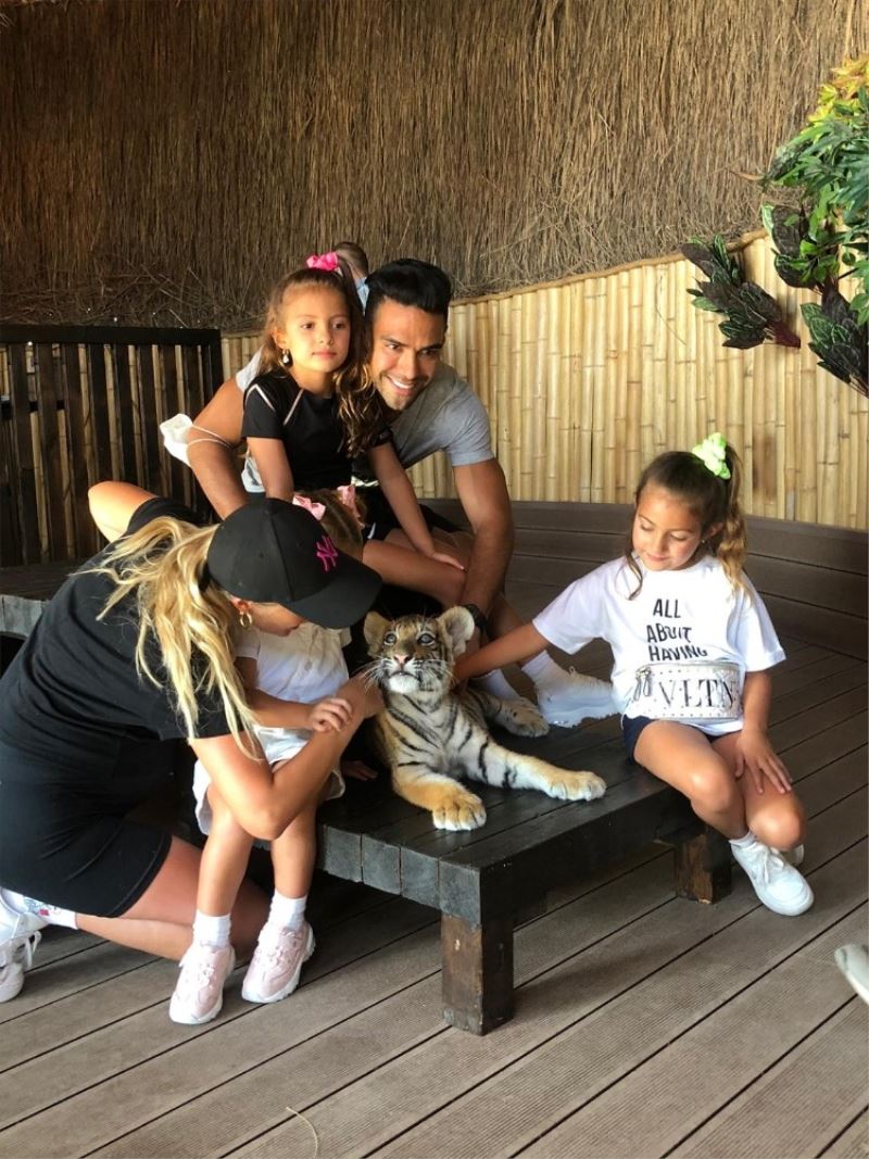 Galatasaray’ın yıldız futbolcusu Radamel Falcao, eşi Lorelei Taron ve 3 çocuğu ile birlikte dün Tuzla Viaport Marina’da bulunan Aslan Park’ı ziyaret etti. Falcao ve ailesi, farklı türdeki büyük kedileri izlerken, onlarla ilgili de sorular sorarak bilgi aldı. Kaplanların bulunduğu alanda hatıra fotoğraf çektiren Falcao ve ailesi daha sonra yavru kaplanları sevdi.