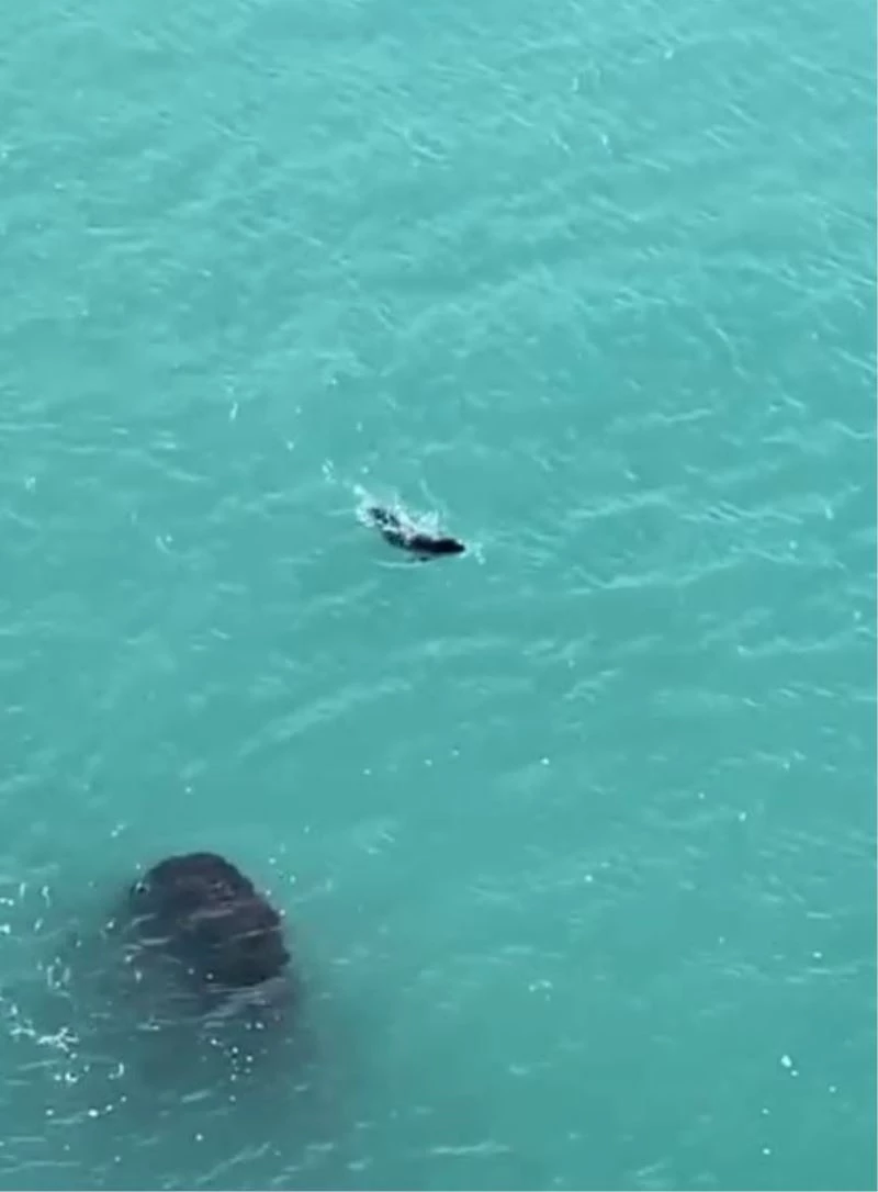 Antalya’da falezlere yakın kısımda yüzen fok balığını görüntüleyen vatandaşlar, ıslık çalarak onun dikkatini çekmeye çalıştı.