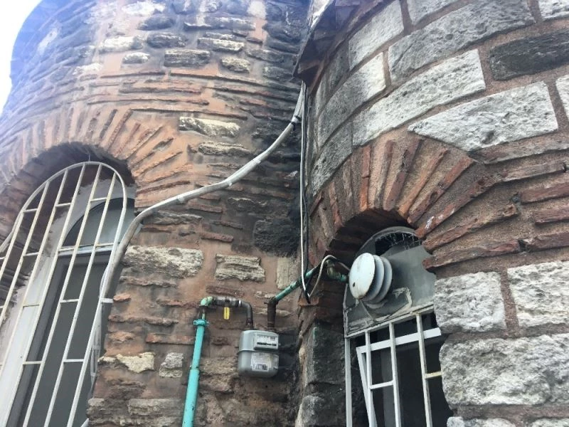 İstanbul Fatih’te bulunan Hirami Ahmed Paşa Camii’nin dış duvarındaki klima ve sarkan boruları vatandaşların dikkatini çekiyor. Tarihi yapıya yakışmayan görüntüler oluşturan caminin bahçesinde bir de tavuk kümesi bulunuyor. Caminin bu halini gören vatandaşlar tepki göstererek, caminin bir an önce tarihine uygun restore edilmesini istiyor. Havadan görüntülenen tarihi camide klimanın aparatlarının duvarlara monte edildiği ve boruların duvarın delinerek içeriye alındığı görüldü. Ayrıca doğalgaz borularının da benzer şekilde tarihi yapının duvarlarına monte edildiği görülüyor.