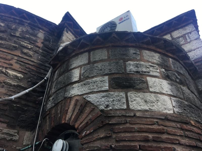 Fatih’te tarihi caminin dış cephesine klima taktılar