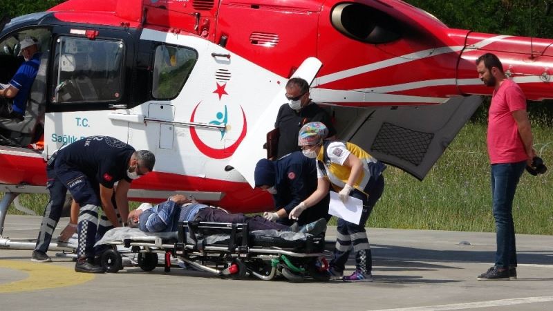 Felç geçiren garsonun yardımına ambulans helikopter yetişti