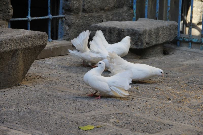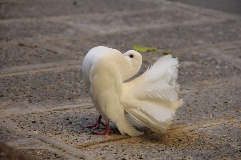 Diyarbakır’ın asil kuşlarından felç görünümüyle görenleri hayrete düşüren Kırktelli güvercini soyu tükenmemesi için özenle besleniyor.